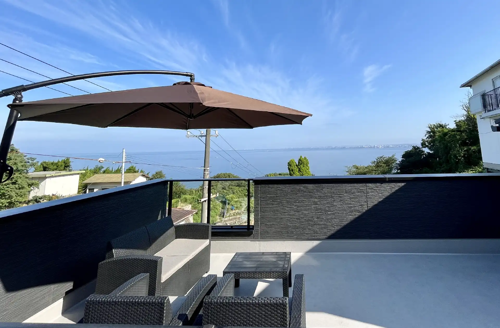 昼は真っ青な空と海、耳を澄ますと波の音が聞こえます。